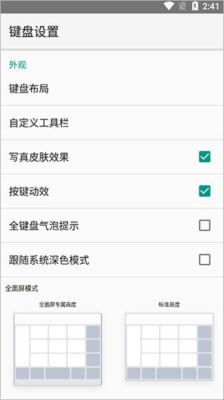 3、可以设置键盘外观,包括写真皮肤效果,按键动效等,全面屏模式等;