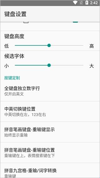 4、也可以设置键盘高度,候选字体大小,以及按键定制等。