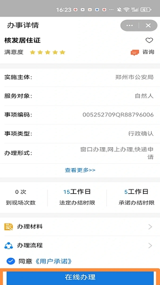 2、接下来,点击“在线办理”,按照提示一步步操作。需要注意的是,你需要填写自己的居住地址,具体到楼栋、单元和门号,还有住房登记信息。如果是租的房子,还要填写房东的真实姓名和身份证号,最好提前向房东要一下。