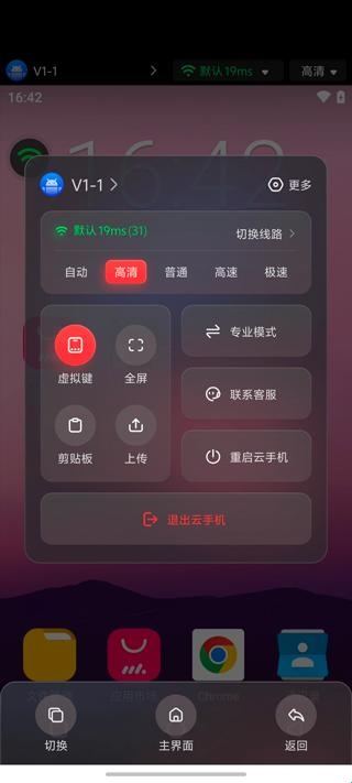 5、当需要退出时,可按返回键退出云手机。
