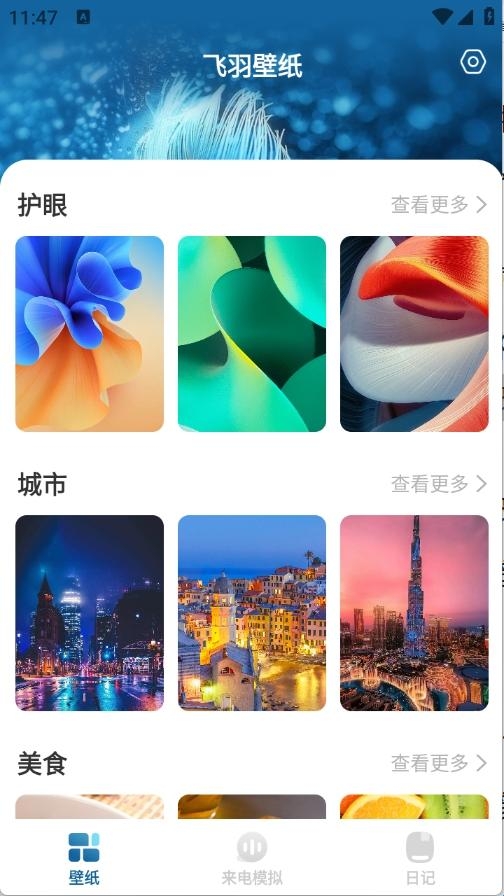 1、把壁纸分为护眼、城市、美食等多种主题类型,满足在不同场景和喜好下的选择需求。