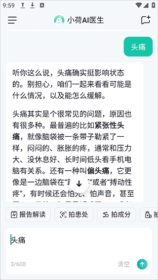 小荷AI医生是一款给用户提供健康管理的如阿布贾,软件提供便捷、智能的医疗服务。软件帮助用户整理病状和病史,帮助就医帮助用户选择最合适的医疗服务。软件支持用户用拍照的方式将自己的病历报告给ai医生,他会详细的给用户解释报告的含义。