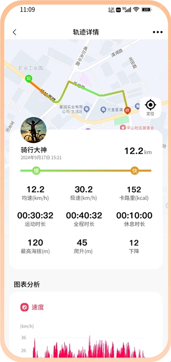 3、内置骑行社区,可以创建挑战赛、分享骑行路线,与好友比拼运动数据。