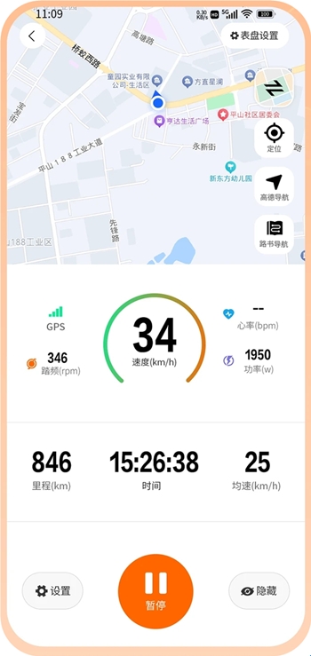 连接智能码表,实时同步骑行数据,记录你的速度、距离、踏频、心率、功率等关键指标,让你每一公里的数据都尽收眼底。