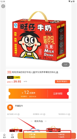 4、在商品的详情,可以一键领券,并能分享赚钱,购物更畅快