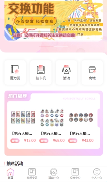 2、支持用户间直接交换闲置赏品,形成“抽赏-收藏-交易”闭环,增强社区互动性。