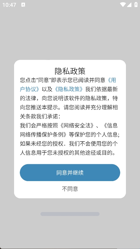 1、下载并安装APP,打开后点击“同意并继续”,接受相关条款,即可进入功主页面。
