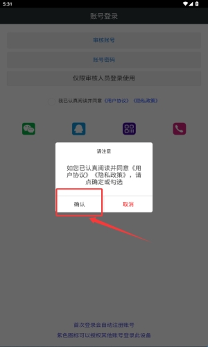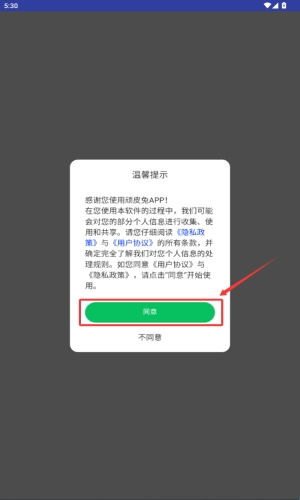 1、阅读隐私政策后,点击红框标注的绿色同意按钮继续。