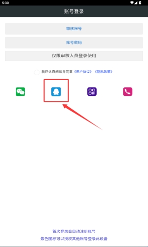 2、在登录方式中选择红框标注的蓝色QQ账号登录。