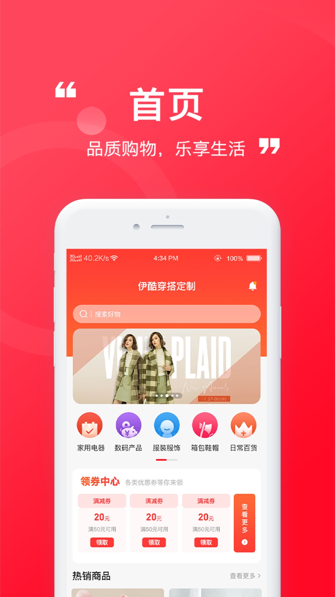 伊酷穿搭是一款功能十分全面的在线购物软件,在该软件里面具有很多种类的衣物以及穿搭效果,而且整个过程十分简单,能够满足不同用户的需求,同时软件里面不定期发放优惠卷,给你提供更多便利哦,还在等什么呢一起来下载吧!
