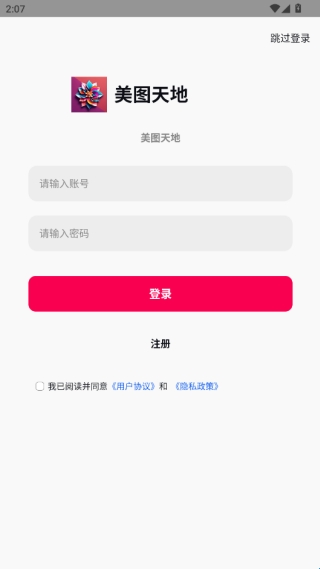 1、在使用美图天地之前,你首先需要同意相关的用户协议和隐私政策。