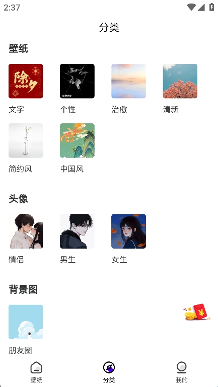 4、提供壁纸素材也是比较齐全,用户也可以直接根据你的需求来这自定义壁纸。