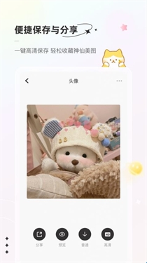 2、所有图片资源支持一键下载保存,用户还可将资源分享至社交平台。
