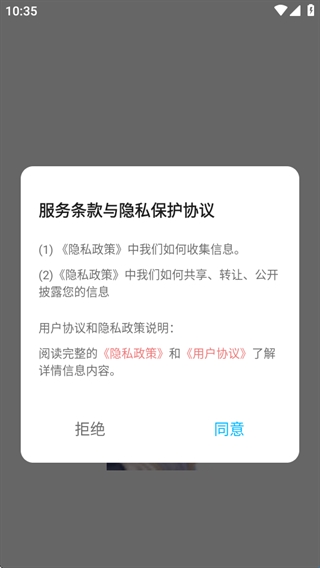 1、打开app,阅读用户隐私协议之后点击同意即可进入;