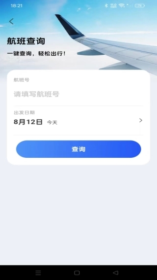 3、进入航班查询界面,输入航班号及出发日期,点击查询,即可便捷查看。