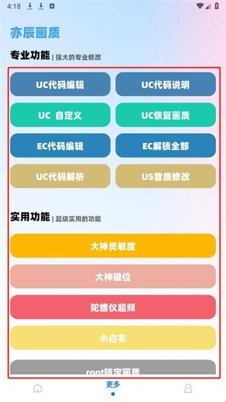 yc工具箱官方正版(又胶片亦辰画质助手),这里简直就是枪战游戏的福音工具APP了,这里准星修改、画质修改、属性修改服务等都是能直接用的,操作也是非常的简单、粗暴,一键就能轻松设置游戏中的画质和其他参数,可以说是非常的实用了!