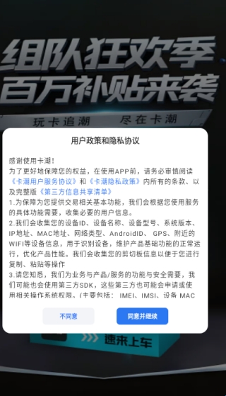 1、在本站下载安装卡潮app并打开,勾选协议注册协议。