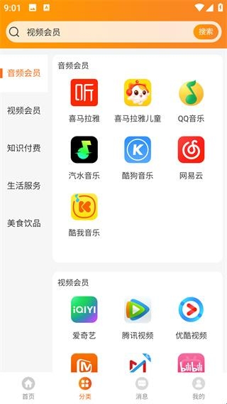 将不同平台的会员分类推荐,用户可以根据平台分类查找会员进行购买使用。