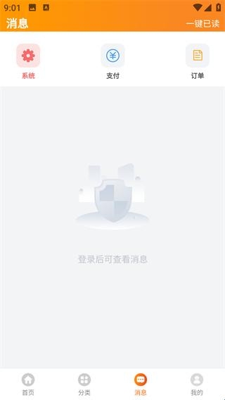 4、在消息中可以查询系统消息、支付消息以及我的订单信息。