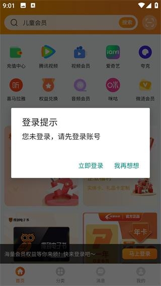 2、进入软件时会提醒用户进行登录,点击立即登录即可使用完整服务。
